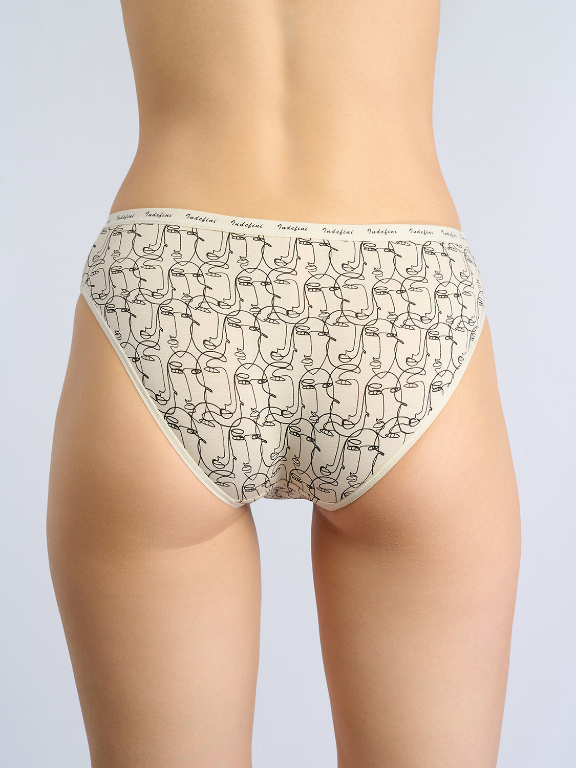 ✔ Пояс: Тонкая эластичная резинка с повторяющимся логотипом Indefini — не только функционально фиксирует трусы, но и подчеркивает брендовую принадлежность.