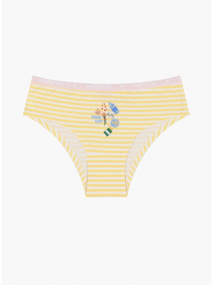 Женские хлопковые трусы-танга в полоску хорошо поглощают влагу и пропускают воздух к телу. Благодаря мягкой резинке трусы идеально сидят на талии и не вызывают дискомфорта. Украшением изделия является разноцветный принт. Средняя посадка делает эти трусы универсальными и подходящими для повседневного использования.Состав 95% Хлопок, 5% Эластан.