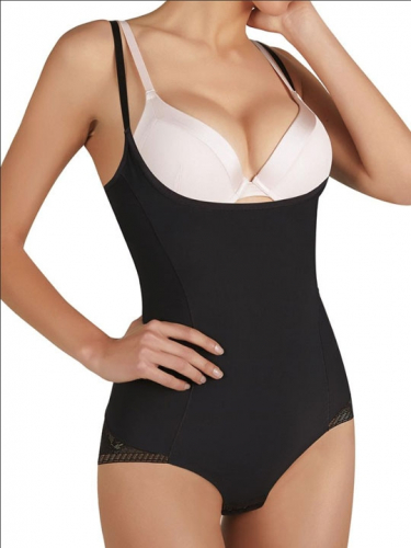 Черный 44(XXL) Трусы корректирующие 19617. Модель слип выполнена из плотной микрофибры и кружева. Уплотненная ткань и высокая посадка прекрасно корректируют живот. 80% полиамид, 20% эластан