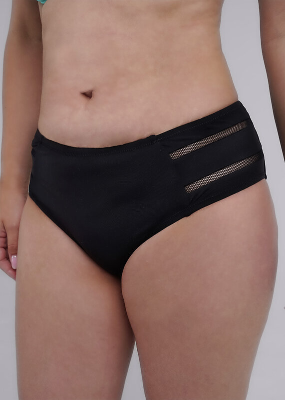 Костюм купальный женский из полиамида с эластаном. Лиф с классическими чашечками, с декоративными элементами спереди, в виде контрастных полос, на регулируемых бретелях. Трусы макси высокой посадки,так же с контрастными элементами.