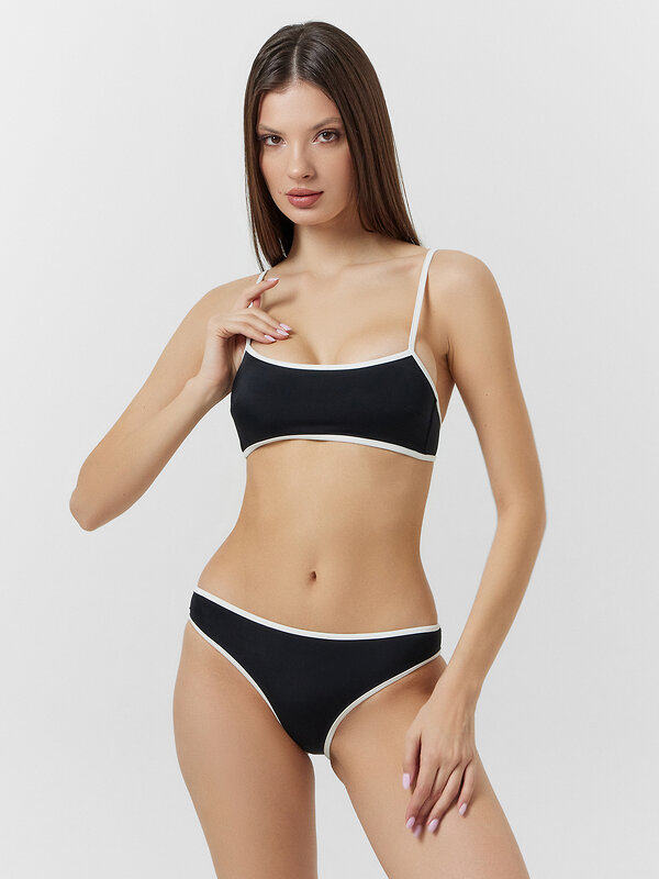 Женский раздельный купальник из пляжной коллекции Mark Formelle - сочетание элегантности, комфорта и функциональности. Топ выполнен из гладкой микрофибры и имеет горизонтальные вытачки от боковых швов, обеспечивая идеальную посадку и поддержку. Лиф на подкладке из двух слоев с чашками-вкладышами дарит комфорт и уверенность при носке. Окантовка горловины и нижнего среза выполнена из контрастной бейки, добавляя стильный акцент. Бретели с регулировкой длины обеспечивают удобную посадку, а металлические регуляторы и крючки-застежки с гальваническим покрытием гарантируют прочность и долговечность. Трусы-слипы имеют среднюю линию талии и также выполнены из гладкой микрофибры на подкладке. Их цельный крой обеспечивает комфортное прилегание, а эластичная тесьма в окантовке верхнего и нижнего срезов дарит дополнительное удобство. Такой купальник - стильный выбор для пляжного отдыха, обеспечивающий максимальный комфорт и уверенность в каждой детали!