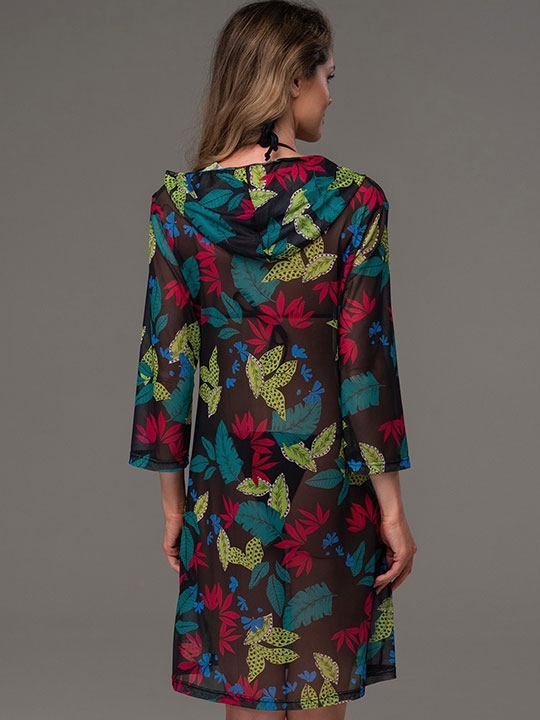 Черный S, M, L, XL, XXXL Туника средней длины Mia-Amore полуприлегающего силуэта с рукавами длиной 3/4 и капюшоном выполнена из тонкой гигроскопичной мягкой принтованной сетки. Горловина спереди регулируется завязками. 100% полиэстер