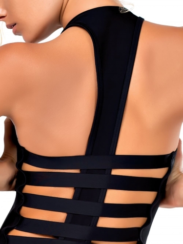 Слитный купальник со сногсшибательной спинкой. Спереди довольно пуританский, с V-образным вырезом, стройнящим силуэт, сзади - шедевр дизайнерского искусства – потрясающее сочетание широкой вертикальной и тонких горизонтальных полос. Купальник дублирован подкладкой из мягкой микрофибры и имеет съёмные поролоновые чашки. В этом исключительно гламурном купальнике Вы будете неотразимы у бассейна, а так же, повязав парео, сможете прогуляться по курортному городку. Состав: 80 % полиамид, 20% эластан.