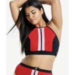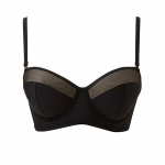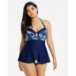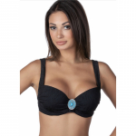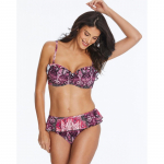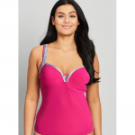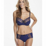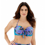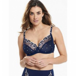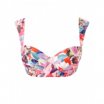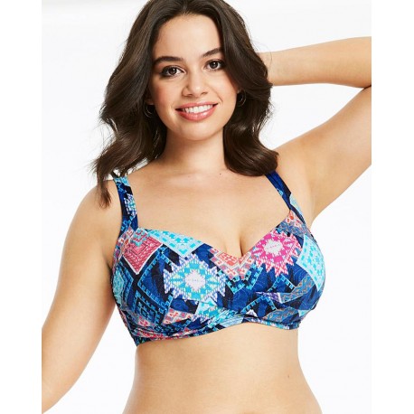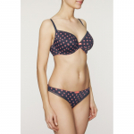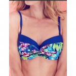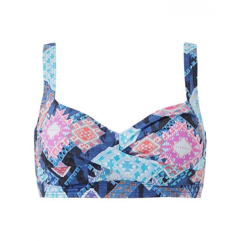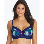 Насыщенные темно-синие тона с контрастным розовым завершают этот замысловатый узор в индийском стиле. С фиксированными формованными чашками из поролона, эластичной полкой на груди и застежкой по центру спинки.