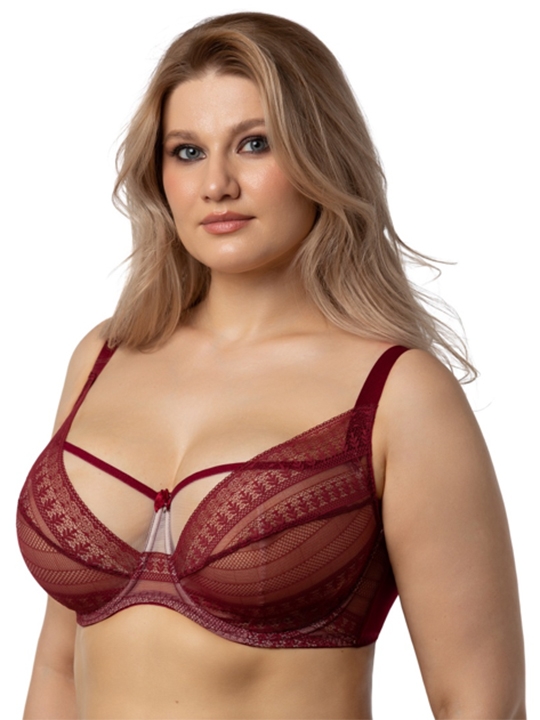 Красная_румба 075C, 075D, 075E, 075F, 075G, 075H, 080B, 080C, 080D, 080E, 080F, 080G, 080H, 085B, 085C, 085D, 085E, 085F, 085G, 090B, 090C, 090D, 090E, 090F, 095B, 095C, 095D, 095E Бюстгальтер - балконет на каркасах с мягкой чашкой. Чашки оригинального конструктивного решения. Внутренняя чашка с вертикальным рельефом и вытачкой создаёт округлую форму. Лёгкая сетчатая структура использованного в ней материала позволяет коже дышать под изделием, обеспечивая наивысший комфорт при носке. Наружная чашка с диагональным членением из ажурного кружева украшает бюстгальтер и создаёт оказывает поддержку. Благодаря этому бюстгальтер надёжно и комфортно фиксирует грудь в нужном положении. 88% полиамид. 12% эластан