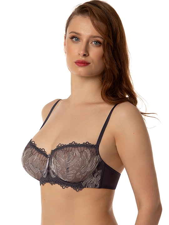 Серебристый_пион 075B, 075C, 075D, 075E, 075F, 075G, 080B, 080C, 080D, 080E, 080F, 080G, 085B, 085C, 085D, 085E, 085F, 090A, 090B, 090C, 090D, 090E Бюстгальтер на каркасах с мягкими чашками из изысканного шитья по ажурной сетке. Благодаря оригинальному крою чашек с двумя разнонаправленными вытачками бюстгальтер создаёт идеальную округлую форму груди. Лёгкая сетчатая структура материалов, из которых выполнена модель, позволяет коже дышать под изделием, обеспечивая наивысший комфорт при носке. Широкий стан с боковыми упругими пластинами плотно облегает тело и снимает нагрузку с плечевого пояса. Ширина бретелей зависит от размера. Полиамид – 85%, эластан – 15%