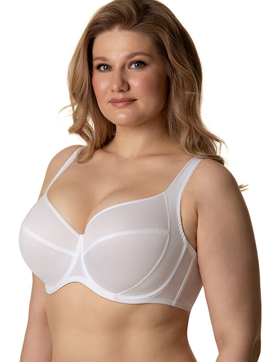 Белый 075D, 075H, 080B, 080C, 080D, 080E, 080F, 080G, 080H, 085B, 085C, 085D, 085E, 085F, 085G, 085H, 090B, 090C, 090D, 090E, 090F, 090G, 090H, 095B, 095C, 095D, 095E, 095F, 095G, 100B, 100C, 100D, 100E, 100F, 105B, 105C, 105D, 105E, 110B, 110C, 110D Бюстгальтер на каркасах с мягкой чашкой. Чашки имеют диагональное членение и боковую поддержку, переходящую в усиленную переднюю часть бретели. Это позволяет высоко приподымать грудь, собирая её к центру и придавая ей правильную округлую форму. Усиленная 85% полиамид, 15% эластан
