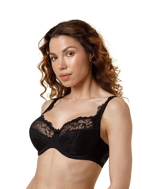 Черный 075B, 075C, 075D, 075E, 075F, 075G, 075H, 080B, 080C, 080D, 080E, 080F, 080G, 080H, 085B, 085F, 085G, 085H, 090B, 090C, 090F, 090G, 095B, 095C, 095F Бюстгальтер полудублированный. Чашка из эластичного кружева. Внутренняя часть стана и передняя часть чашки на подкладке из 100% хлопка. В больших размерах боковые детали усиленны сетчатой подкладкой. Верхняя часть бретели и боковая часть стана из эластичного кружева, боковые пластины надежно фиксуруют стан. 77% полиамид; 15% эластан; 8% хлопок