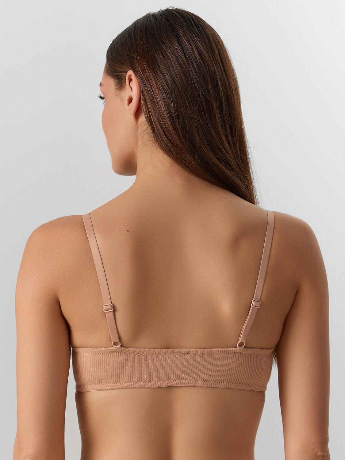 Максимально удобное бюстье женское с формованными чашками без эффекта push-up. Из-за отсутствия косточек модель практически не ощущается и не стесняет движений, что делает его великолепным вариантом для повседневной носки, а также для спорта и активного отдыха. Особый шарм повседневному белью добавляет материал в рубчик. Многолетний опыт производства, множество экспериментальных носок и испытаний позволили создать идеальную модель комфортного, безопасного и красивого нижнего белья. Материалы - только высочайшего качества: дышащие, гипоаллергенные и долговечные. Продуманная анатомическая конструкция гарантирует отличную посадку и надежную поддержку груди. Благодаря гладким чашкам бюстье почти не заметно под одеждой, что позволяет носить его под облегающими фигуру моделями джемперов и платьев. Рекомендуем!