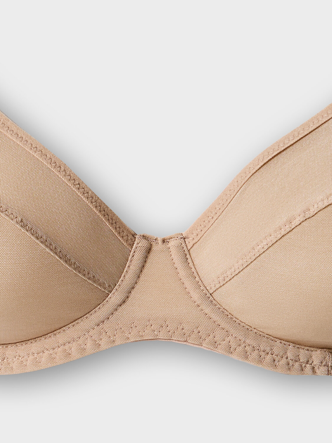 Чашки с тройным членением из эластичной сетки. Верхний срез чашки обработан эластичной тесьмой. Стан из эластичной сетки.