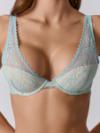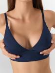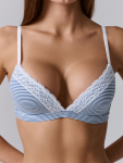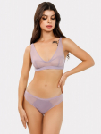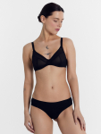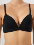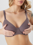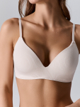 Бюстгальтер имеет формованные чашки, которые обеспечивают естественную поддержку и мягко повторяют форму груди без использования косточек или вставок push-up. Это делает модель особенно удобной, так как она практически не ощущается на теле. Дизайн бюстгальтера выполнен в классическом стиле, без лишних деталей, что делает его незаметным под облегающей и тонкой одеждой.