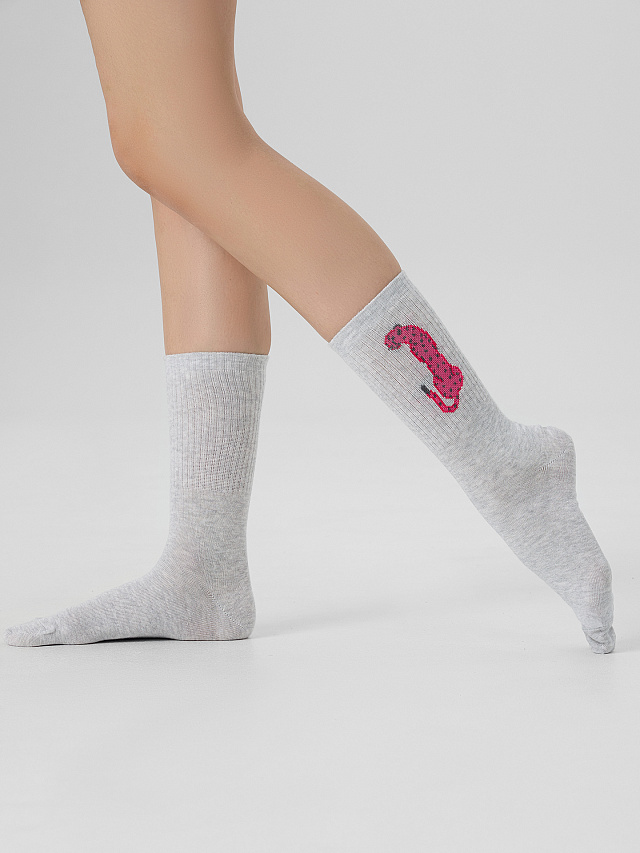 Высокие классические носки женские с плотной резинкой и рисунком в виде пантеры. Выполнены из высококачественного гребенного хлопка - тонкого, прочного и эластичного. Натуральные волокна отлично пропускают воздух и впитывают влагу, обеспечивают ощущение комфорта в течение дня. Благодаря небольшому количеству эластана в составе, носочки хорошо облегают и сохраняют форму, практичны и долговечны. Пятка и мысок дополнительно усилены для защиты от протирания при активном движении. Резинка мягко, но надежно удерживает носки, не передавливая ногу и не оставляя на коже следов. Отличный вариант для зимних дней и новогодних праздников. Нежные, достаточно теплые и мягкие, создадут атмосферу тепла и уюта. Порадуйте себя и своих близких прекрасными носочками от Mark Formelle! св.серый меланж