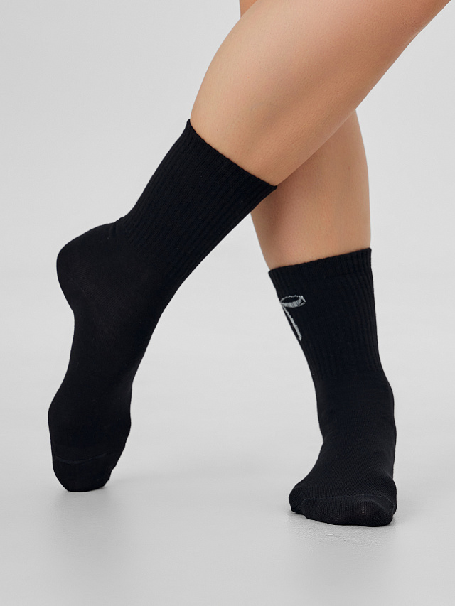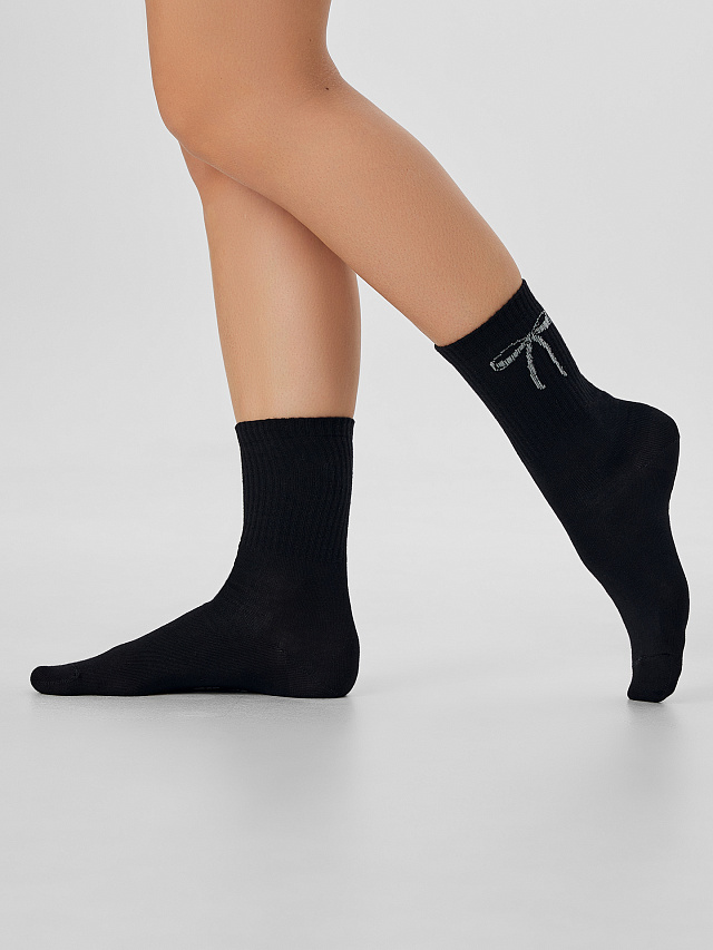 рис.3139 Женский носок с высоким плотным бортом и рисунком в виде бантика с люрексом на участке резинки. черный