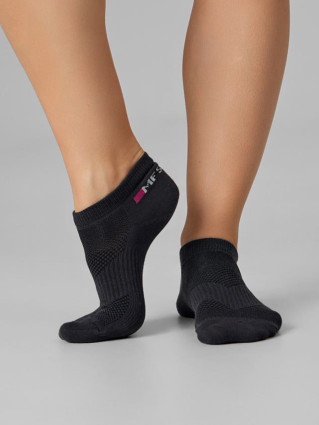рис.153 Женские носки укороченные спортивные с сеткой на передней части следа и перетяжкой посреди стопы. графитовый