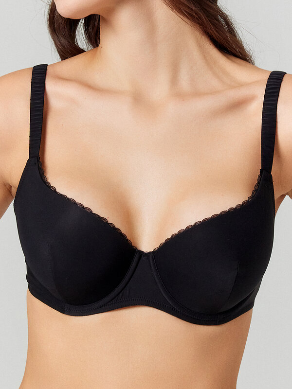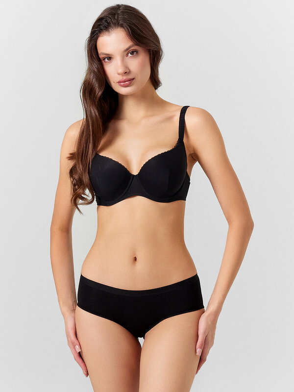 Бюстгальтер женский. На каркасах. Чашки. Бюстгальтер выполнен из трикотажного эластичного полотна YD 070455 140 120 01 10. Ластовица на подкладке из р.441. Пройма и верхний срез стана обработаны тесьмой жесткой без зуба. Нижний срез стана обработан тесьмой жесткой без зуба (по размерам). Передний срез чашки декорирован тесьмой с зубом. Застежка (по размерам). Надставки бретелей (по размерам). Декоративная часть бретели из трикотажного эластичного полотна YD 070455 140 120 01 10 (сосборена, внутри тесьма жесткая без зуба по размерам). Бочки на подкладке из сетки LACE.