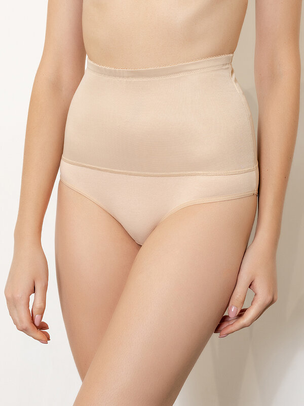 Корректирующие трусики с высокой посадкой. Деликатно утягивают проблемные зоны, формируя элегантный женственный силуэт. Нижняя часть модели выполнена из натурального хлопкового полотна, верхняя – из полотна эластик. На поясе – эластичная тесьма, по ножкам – бейка. Базовая расцветка – рекомендуем!