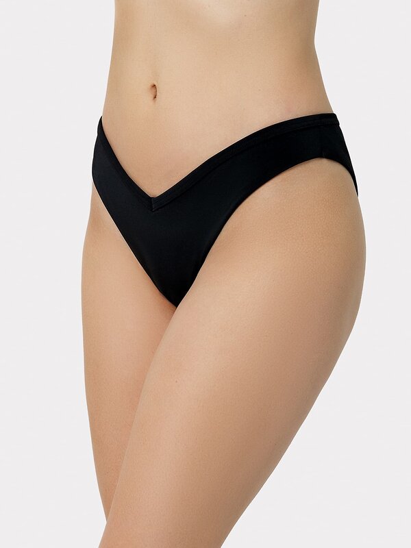 Ластовица, фронтальная и задняя части на подкладке. Верхний срез окантован отделочным полотном. Ножки обработаны обтачным швом с вложенной резиновой тесьмой внутри.