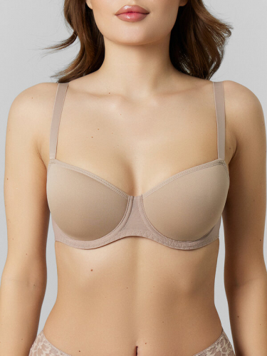 Очаровательный кружевной бюстгальтер базовой расцветки. Дубляжные чашки на косточках гарантируют полноценную поддержку. Полупрозрачное полотно плавно переходит с чашек на бретели. Симпатичный бантик на ластовице добавляет шарма.