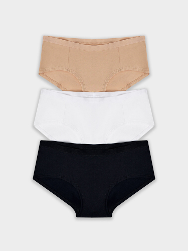 Набор женских трусиков (3 шт.) в различных цветах. Трусы женские слипы хлопок или, как их еще называют, трусы слип-бикини - популярная модель женского белья. Невероятно удобные, благодаря своей заниженной посадке, они пользуются заслуженной любовью покупательниц. Трусы изготовлены из высококачественного натурального хлопка, дышащего, мягкого, гипоаллергенного - идеального для повседневной носки. Помимо длительного и полного ощущения комфорта, материал отличается долговечностью и сохраняет вид даже после многочисленных стирок. Цвет трусиков останется ярким, рисунок не поблекнет и долго будет радовать вас. Продуманная анатомичная конструкция, плоские швы и деликатные резиночки делают эту модель подходящей для занятий спортом, можно использовать её как спортивное бельё, а также как ночные трусики для сна. Пригодятся трусы-бикини и будущим мамам: низкая талия трусиков удобно помещается под растущим животиком и абсолютно не давит. Благодаря широкому размерному и цветовому ряду, в линейке Mark Formelle вы обязательно найдете модель белья с низкой посадкой по своему вкусу.