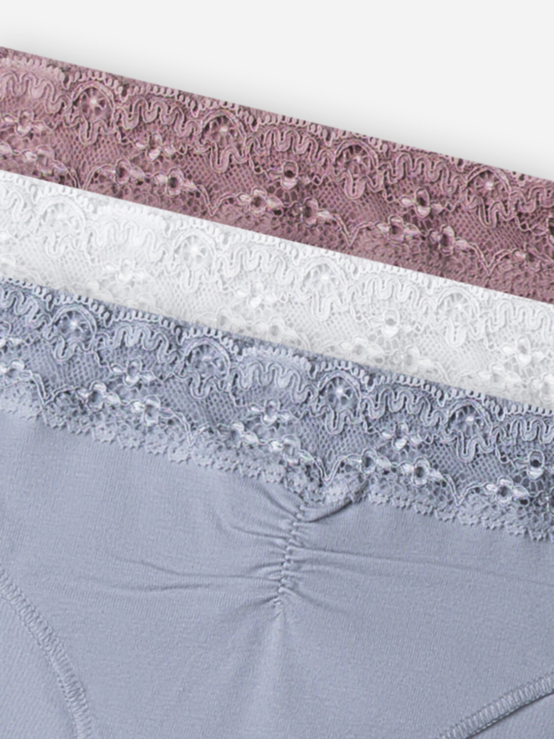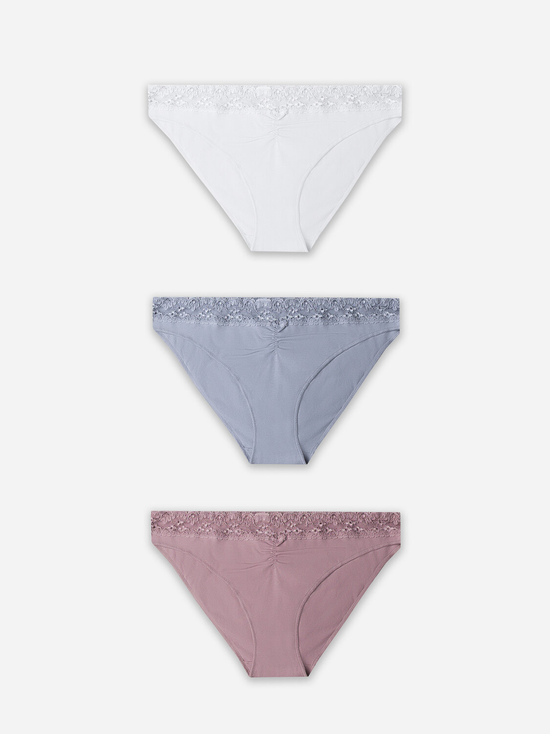 Набор из трех слипов с кружевными деталями — это сочетание повседневного комфорта и изящной эстетики. Модели с заниженной линией талии и боковыми вырезами мягко подчеркивают силуэт, создавая ощущение легкости и грации.