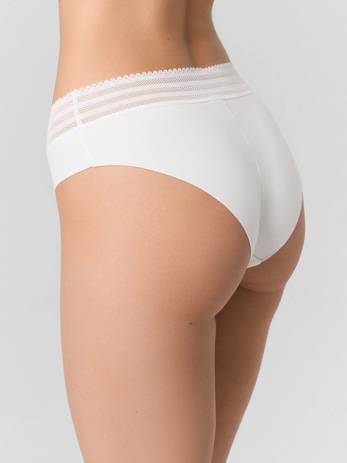 Трусы женские классического силуэта со средней посадкой из интерлока. Передняя деталь цельная. Ластовица цельная на подкладке из кулирного полотна, отлетная по переднему краю, обтачная по боковым срезам