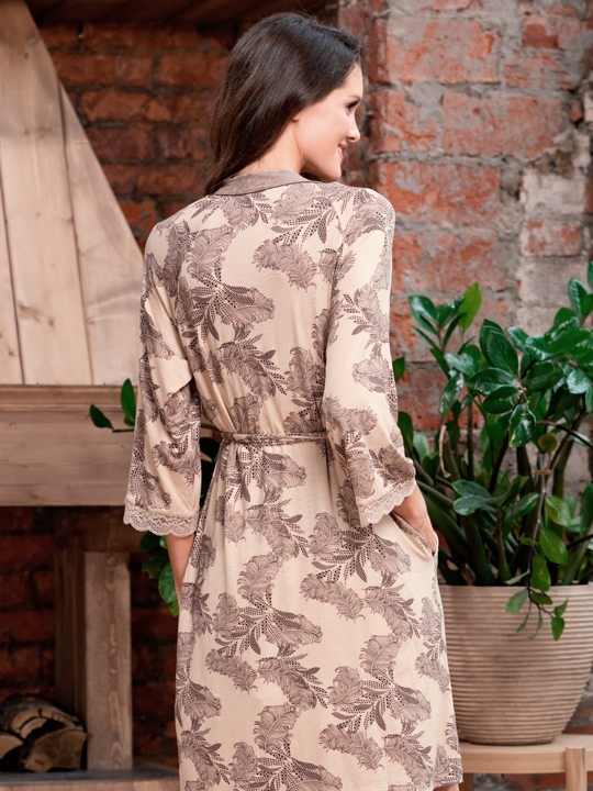 Бежевый S/M, XXL/XXXL Короткий запашной халат Mia-Amore с длинным рукавом. Халат выполнен из принтованного трикотажного полотна с отделкой из трикотажного компаньона и контрастного канта. Края рукавов обработаны узким эластичным кружевом. По бокам расположены карманы. 95% вискоза, 5% эластан