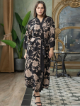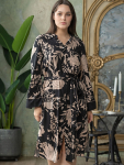 Молочный 4XL/5XL, 2XL/3XL Короткий халат выполнен из смесовой принтованной ткани. Ажурное кружево расположено по низу рукавов, борту и низу халата. 70% натуральный шелк, 25% полиэстер, 5% эластан