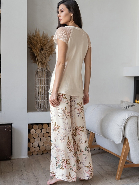 Молочный S, M, XL, XXL, XXXL Широкие брюки Mia-Amore выполнены из принтованного смесового шелка. По поясу расположена кулиса для регулировки ширины. В боковых швах обработаны карманы. 58% натуральный шелк, 42% вискоза