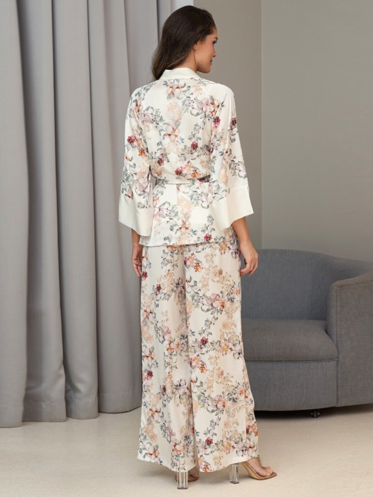 Молочный M, XL, XXXL, XXXXL Комплект-тройка Mia-Amore состоит из запашного жакета с длинным рукавом, широких брюк и топа на тонких бретелях. Жакет и брюки выполнены из принтованного смесового шелка на матовой основе с однотонной отделкой, а топ из однотонного смесового шелка. Линию 70% натуральный шелк, 25% полиэстер, 5% эластан
