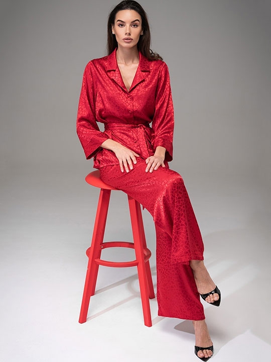 Красный S, L, XL, XXL, XXXL, XXXXL Элегантный комплект Mia-Amore состоит из жакета с длинным рукавом и широких брюк. Данный сет выполнен из однотонного искусственного шелка на жаккардовой основе. В боковых швах брюк расположены карманы. Линию талии можно подчеркнуть за счет пояса, который идет в комплекте. 100% полиэстер