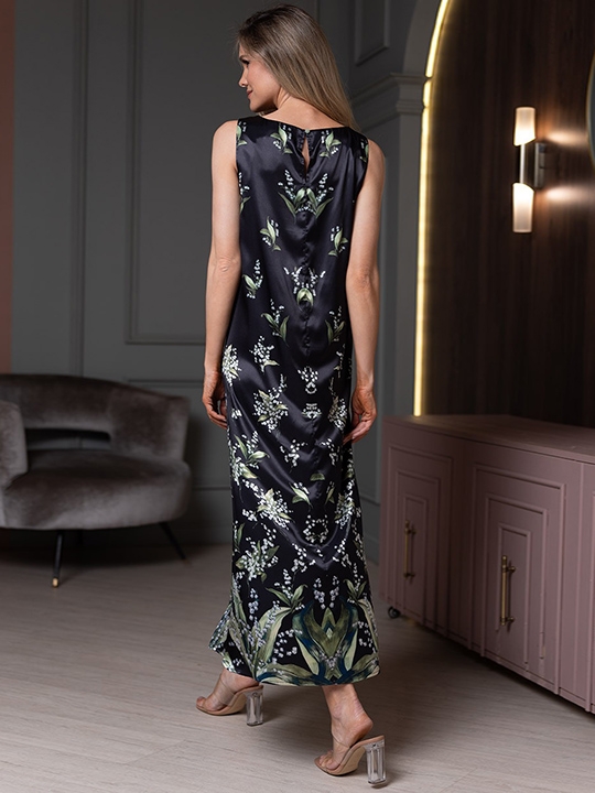 Черный S, M, L, XL, XXL, XXXXL, XXXXXL Длинная туника-платье Mia-Amore без рукавов выполнена из принтованного смесового шёлка. На спинке платья застежка на пуговицы. В боковых швах есть карманы, по бокам разрезы. 70% натуральный шёлк, 25% полиэстер, 5% эластан