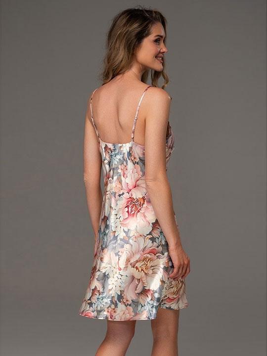 Мультицвет XXL, XXXL, XXXXL, XXXXXL Короткая сорочка Mia-Amore на тонких бретелях без подреза под грудью выполнена из принтованного смесового полотна. 70% натуральный шёлк, 25% полиэстер, 5% эластан