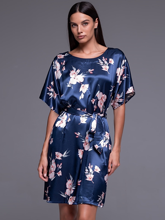 Мультицвет S/M, L/XL, XXL/XXXL, XXXXL/XXXXXL Туника Mia-Amore длинной до колен со спущенным коротким рукавом, круглым вырезом горловины выполнена из принтованного искусственного шёлка. В боковых швах карманы, рубашка комплектуется съемным поясом. 100% полиэстер