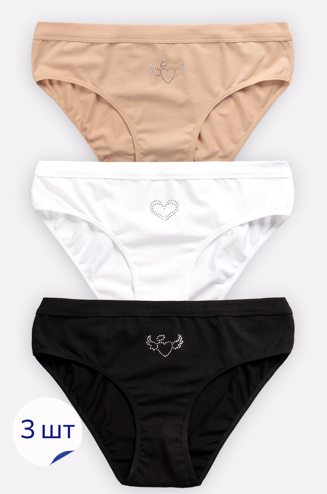 Плоские швы не натирают и не ощущаются на теле. Хлопковые трусы из трикотажа станут идеальным вариантом для дома и сна, домашних дел, отдыха и прогулок. ов слипов 3 штук выполнен из приятного к телу хлопка. Слипы для женщин представлены в базовых цветах и дополнены рисунком из страз. Благодаря комфортной средней посадке повседневные трусы не стесняют движений и не ощущаются на теле.
