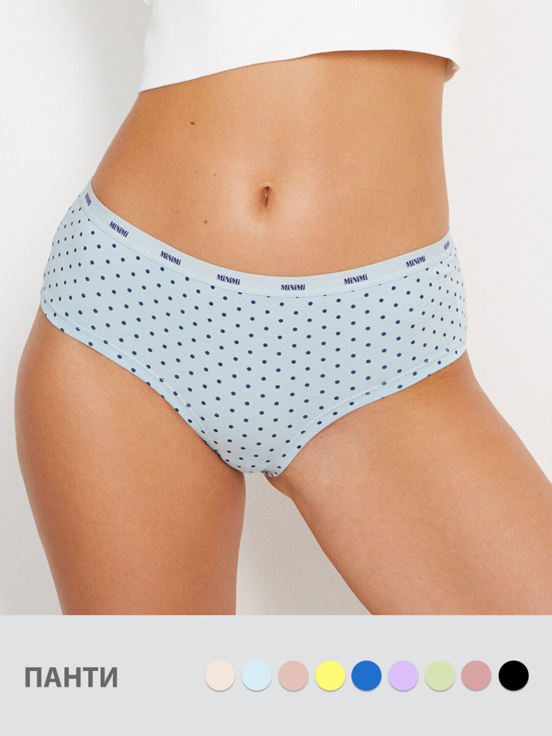 Женские трусы-панти в горошек с брендированной резинкой по талии, без использования резинки «по ножкам», что создает дополнительный комфорт при носке.