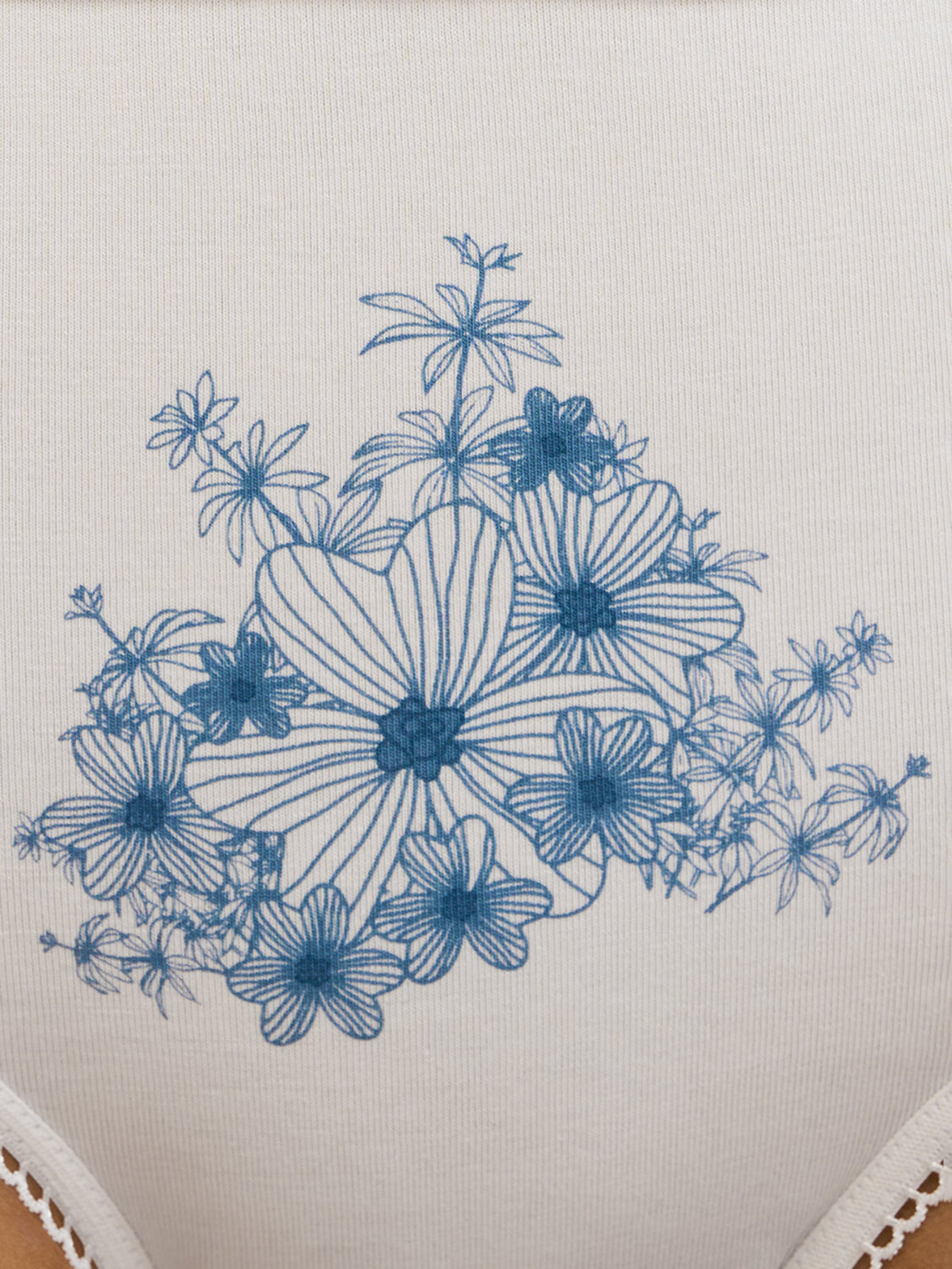 Трусы - слипы со средней линией талии с широкой боковиной. Практически полностью закрывают ягодицы. Изготовлены из высокогигиеничного хлопка, который не подвержен деформации и пилингу, отлично пропускает воздух, впитывает влагу и подходит даже для самой чувствительной кожи. Края обработаны мягкими эластиками с кружевными фестонами.