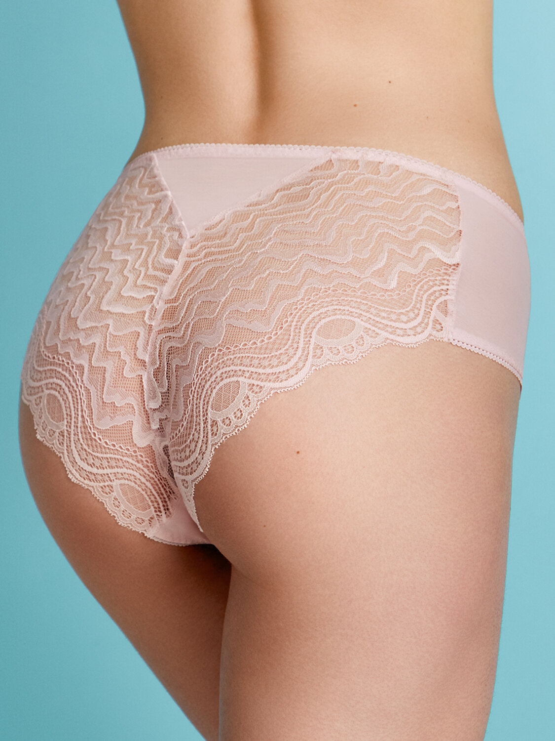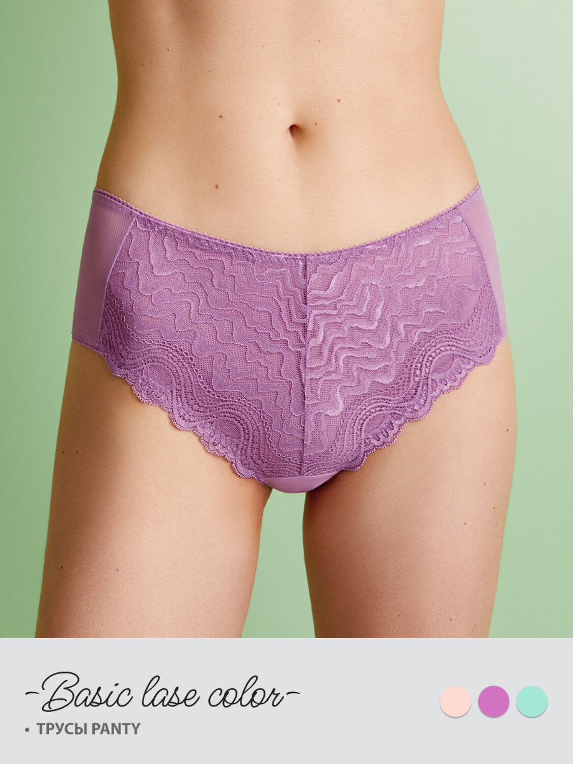 Кружевные трусы «панти» из эластичной микрофибры со средней линией талии и широкой боковиной. Комфортно облегают и обеспечивают легкую поддержку в области живота. Эффектно подчеркивают ягодицы и придают им более округлую форму. Ластовица выполнена из мягкого хлопка.