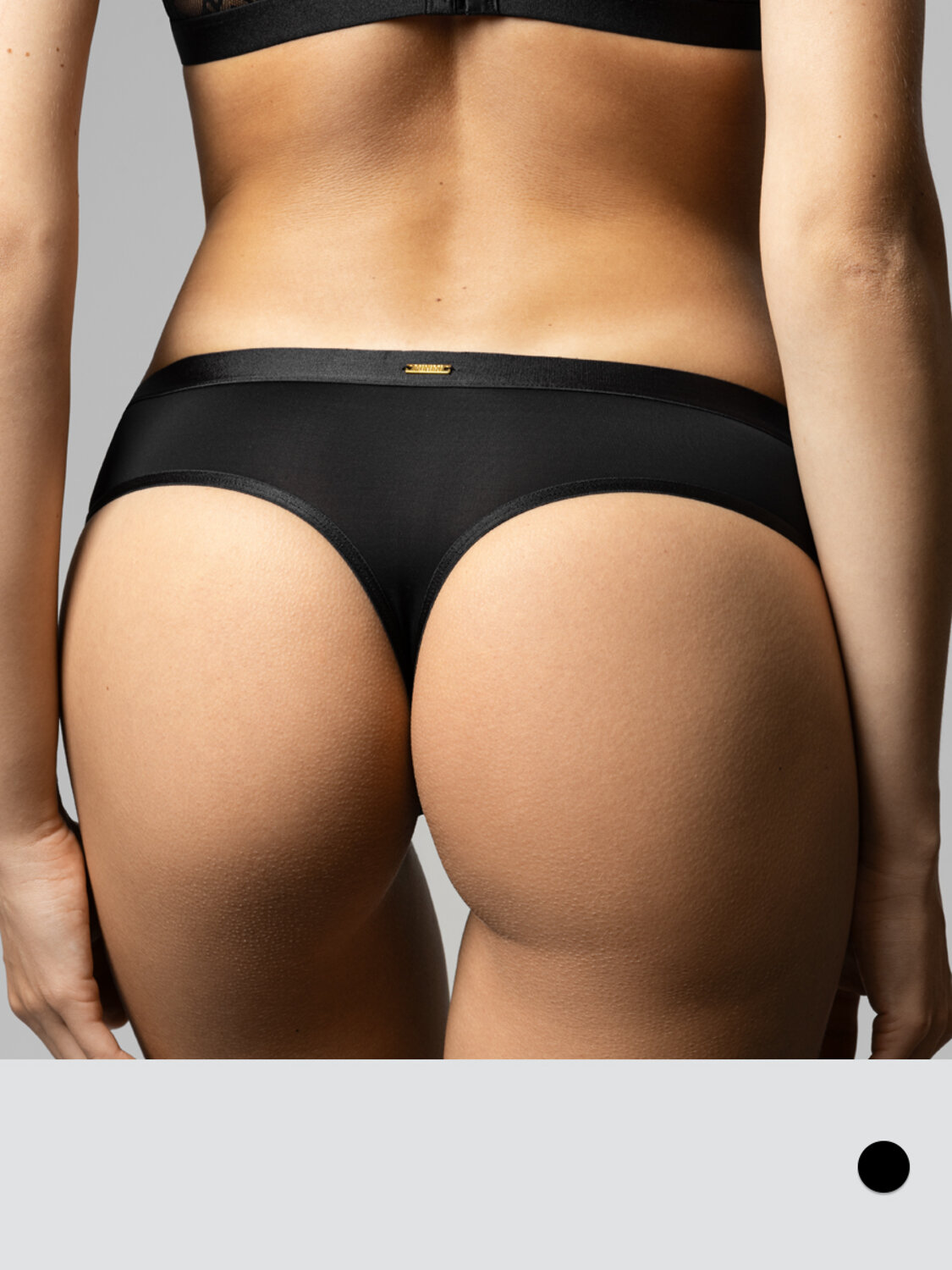 Трусы - стринги из кружева и эластичной микрофибры со средней линией талии. С акцентной лентой в тон по краям. Соблазнительно подчеркивают бедра, практически полностью открывают ягодицы. Превосходно сочетаются с тонкой и облегающей одеждой. Ластовица из мягкого хлопка обеспечивает дополнительный комфорт.