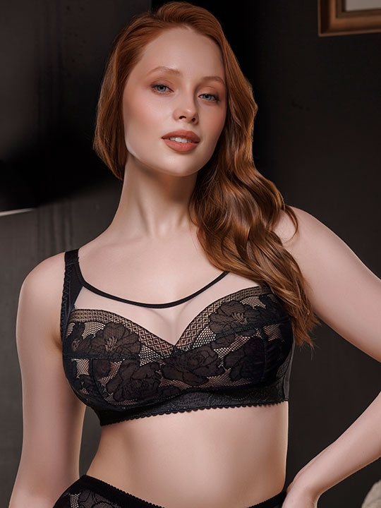 Nero 4B, 4C, 4D, 4E, 5B, 5C, 5D, 5E, 5F, 5G, 6B, 6C, 6D, 6E, 6F, 7B, 7C, 7D, 7E Бюстгальтер-топ с мягкими чашками Torino с Т-образным швом без косточек. Особый крой чашки с поддерживающей сеткой в нижней части, а также боковая деталь из упругого трикотажного полотна собирают грудь к центру и создают округлую форму. Верхняя деталь чашки из эластичного кружева и сетки, по верхнему краю чашки проходит вшитая тонкая резинка, благодаря которой чашка идеально прилегает к телу. Нижний срез пояса укреплен широкой эластичной тесьмой. Градация бретелей, ширина застежки увеличиваются пропорционально размеру бюстгальтера. Застежка в два ряда на три позиции. Коллекция "Amanda" Кружево 86% полиамид 14% эластан Ткань 91% Полиамид 9% эластан Сетка 78% полиамид+22%эластан