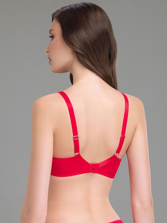 Rosso 3C, 4C, 4D, 4E, 5C, 5D, 5E, 6C, 6D, 6E, 7C, 7D, 7E Бюстгальтер с мягкой чашкой Imola, на косточках. Эффект пуш-ап достигается за счет кроя смещённый немного вверх T-образный шов чашки, не пережимающий грудь. Усиленная поддерживающей сеткой нижняя часть чашки, поднимает и моделирует округлые формы. Регулируемые бретели, переходящие на спинке в маечную форму, а также продублированные эластичной сеткой крылья бюстгальтера и боковые косточки дают усиление поясу для лучшей поддержки тяжелой груди. Выполнен из утонченного кружева и сетки с диагональной полоской. Коллекция "Scarlett". Кружево 83% ПА + 17% ЭЛ, ткань 88% ПА + 12% ЭЛ, сетка 91% ПА + 9% ЭЛ, подкладка 100% ПА