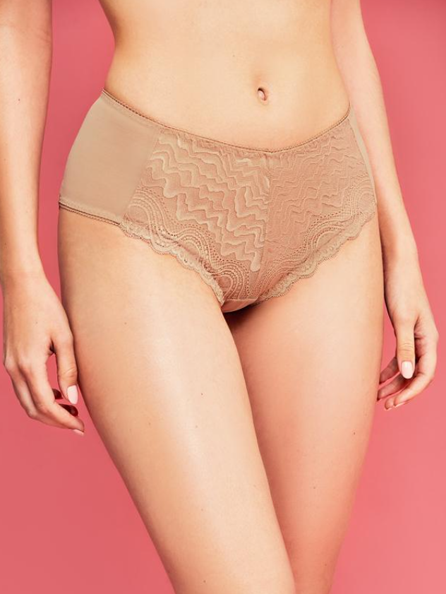 Трусы-панти с высокой посадкой и легким утягивающим эффектом в области живота дублируются сетчатым полотном. Полупрозрачное ажурное кружево дополнено по бокам мелкой сеткой, создавая эффектную и практичную комбинацию. Эффектная модель в стиле "ретро," которая идеально сидит, и прекрасно сочетается с любыми нарядами.