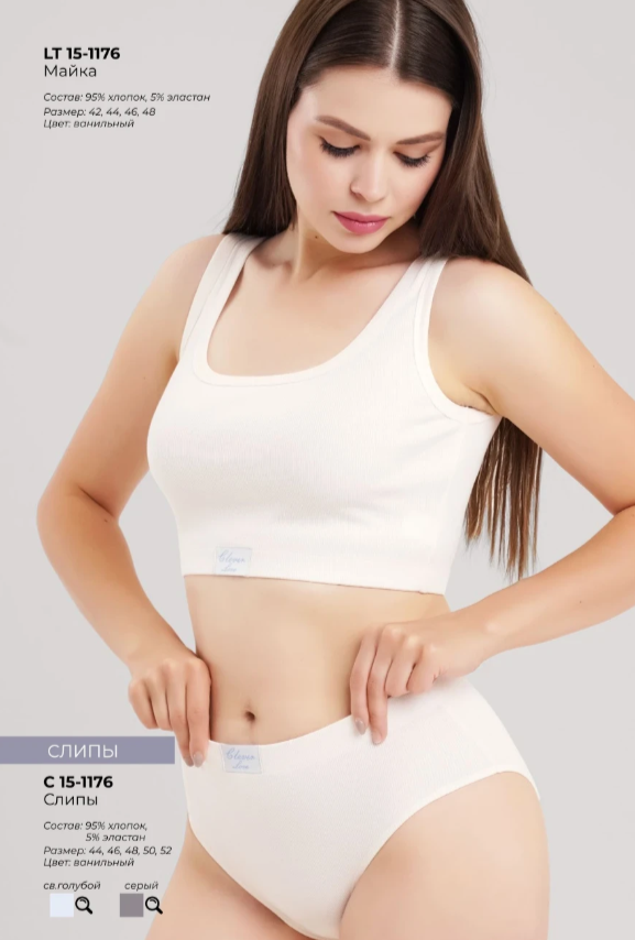 "Описание: Трусы слипы женские из эластичного хлопкового полотна кашкорсе лапша. Обработка краев по талии и ноге - подгибка с внутренней резинкой. Спереди на поясе по центру жаккардовая нашивка.
