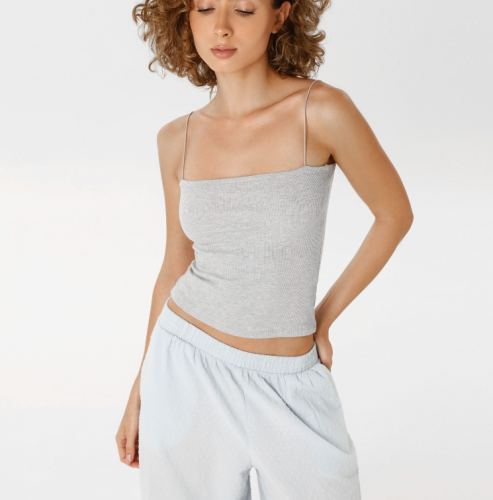 Базовая классическая майка на тонких бретелях изготовлена из трикотажного полотна в рубчик. Приталенный силуэт хорошо подчеркивает фигуру. Трикотаж не вытягивается, обладает хорошей влаго и воздухопроницаемостью.