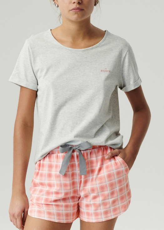 Женская пижама Atlantic в цвете белая с голубым из коллекции домашней одежды. Коллекция Homewear польского бренда Atlantic - это женская одежда для домашнего отдыха и сна, которая представлена как готовыми пижамными комплектами. Женский пижамный комплект NLP-497 от польского бренда Atlantic превосходно подойдет абсолютно любой женщине. Фасон этой модели гарантирует идеальную посадку по фигуре и максимальный уровень комфорта. Стильная женская пижама, состоящая из футболки с коротким рукавом и шорт. Футболка имеет круглый вырез у горловины и небольшой брендированный логотип на груди. Шорты с эластичным поясом и завязками дополнены карманами. Пижама изготовлена из экологически чистого и современного премиального материала - модала - в сочетании с хлопком. Модал отличается легкостью, мягкостью и практичностью.