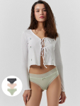 Женские трусы-слипы — утонченное сочетание элегантности и комфорта. Модель со средней посадкой выполнена из эластичного кружевного материала, который изящно подчеркивает линии и обеспечивает комфорт в повседневной носке. Цельная передняя деталь из кружевного материала придаёт изделию лёгкость и женственность, делая его еще более привлекательным. Подкладка ластовицы из кулирной глади обеспечивает дополнительное удобство и гигиеничность, а по верхнему срезу проходит эластичная кружевная тесьма, добавляющая изделию завершенный вид и способствующая комфортной посадке.Идеальный выбор для тех, кто ценит утонченный дизайн и комфорт в одной модели. Подойдёт для создания особенного образа или для повседневного использования. Вы можете дополнить подходящим верхом из этой же коллекции для создания гармоничного и элегантного комплекта. мятный