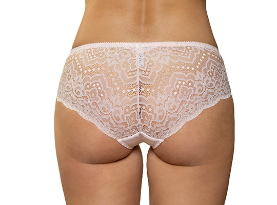Трусы-слип со средней линией талии. Выполнены из микрофибры и эластичного кружева. Срезы по краю ножек обработаны на плоскошовной машине. Украшение: атласный бантик. Цветочно-розовый