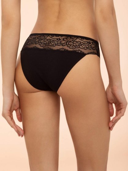Оптовая продажа. Трусы слипы женские из хлопка с добавлением полиамида, со средней линией талии, х/б ластовицей. Модель дополнена кружевом.