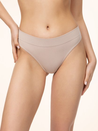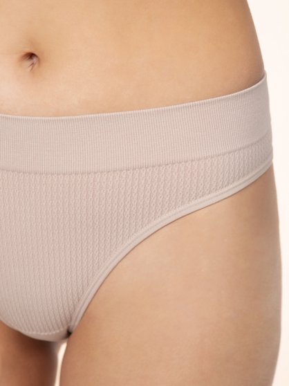 Оптовая продажа. Трусы стринги женские из мягкой микрофибры, средней посадки, в "рубчик", бесшовные, однотонные, на широком поясе, х/б ластовица.