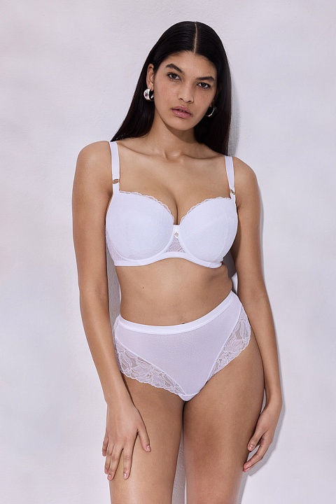 Бюстгальтер Glow на каркасах с чашками на тонком поролоне и съемными вкладышами. Внутренняя сторона чашки проложена хлопковым трикотажем, наружная покрыта роскошным кружевом с цветочным узором. Бретельки регулируются по длине, на спине застежка на крючки-петли. Данная модель идеально подчеркнет форму вашего бюста, подойдет как в качестве дополнения к повседневному стилю, так и в качестве нижнего белья для особых случаев. Между чашек украшение в виде подвески и атласной ленточки.