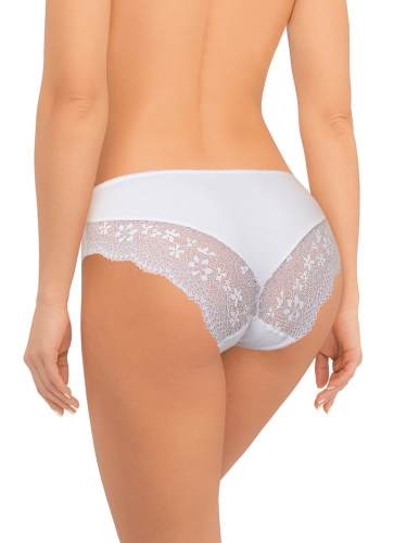 95% хлопок/ 5% спандексТрусы-слип со средней линией талии/ выполнены из хлопкового полотна с содержанием эластана. Задняя деталь из мягкого кружева с цветочным рисунком. Линия талии и вырезы ножек обработаны эластичной тесьмой с деликатным фестончатым краем. Хлопковая ластовица. Упаковка - индивидуальная картонная коробочка